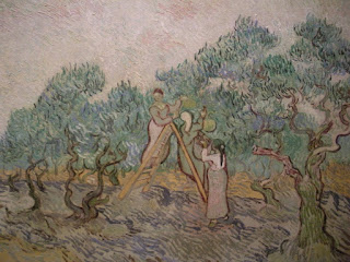 It is commonly understood that Van Gogh’s paintings of The Sower were inspired by Millet’s The Sower. No doubt Van Gogh knew many paintings by Millet and shared his appreciation for man’s connection to the land. He adopted Millet’s expressive lines, but thickened the contours and turned up the volume on color. Brandon, one of my students, was amazed to discover the wind that Van Gogh captured in The Olive Orchard, now on view in the Chester Dale Collection at the National Gallery of Art. Certainly Millet was one of Van Gogh’s most inspiring teachers, along with the Japanese artist Hiroshige, whose woodcuts gave Van Gogh the motif of diagonal cuts for rain.