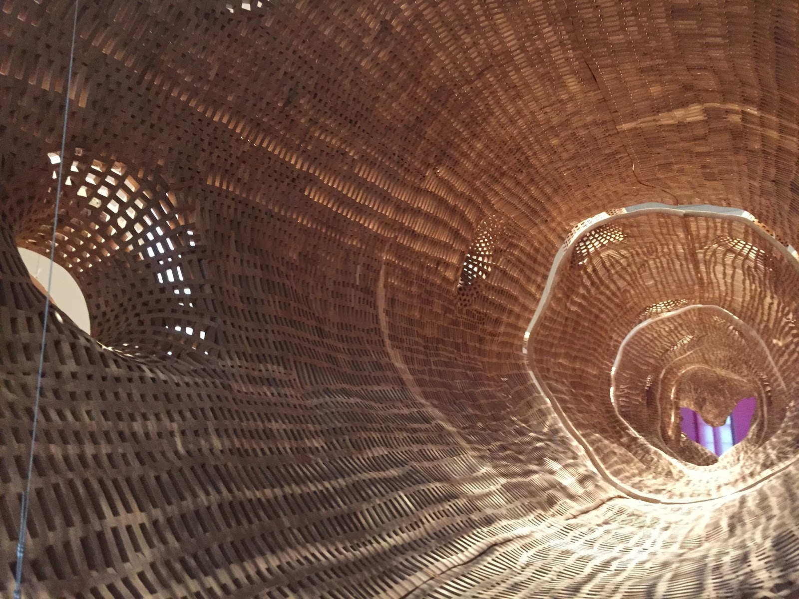Continuing back on the left side of the building, viewers come into a grandiose room with giant stick weavings by Patrick Daugherty. (A photo of Shindig is on bottom. See the previous blog about one of his interactive and impermanent environmental installations, in Reston, VA)